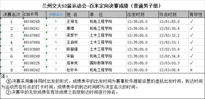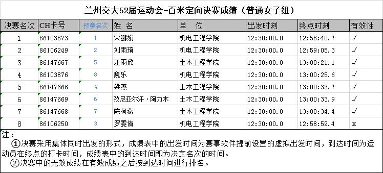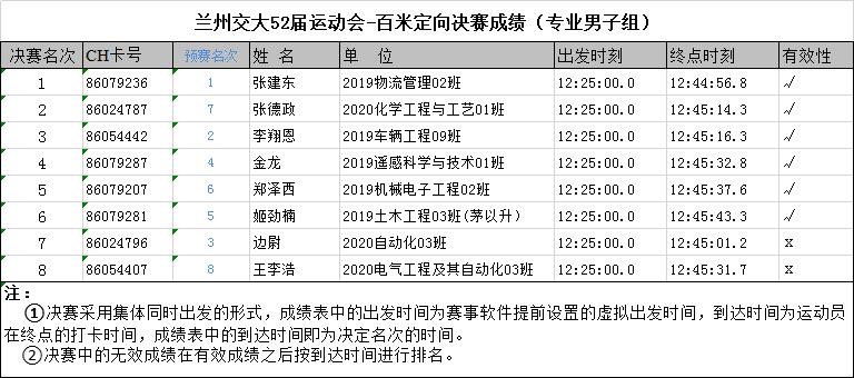 庆祝建党100周年兰州交通大学第52届运动会大学生定向运动比赛成绩
