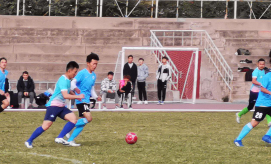 随着主裁判的一声哨响。机电工程学院代表队与测绘与地理信息学院代表队展开角逐。虽已深秋寒意浓浓,但丝毫不能阻挡球场上运动员们的热情,场上队员们积极拼抢,长传冲吊,随着足球一起奔跑,场下观众啦啦队整齐壮观的助威声响彻云霄,为比赛增添了一道靓丽的风景线。
