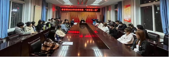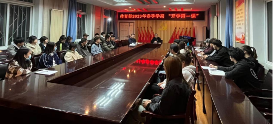 3月6日下午,体育部2023年春季学期“开学第一课”在天佑体育场体育部二楼会议室举行,体育部党总支书记朱文贤老师以“弘扬中华体育精神,培养时代体育新人”为题,给体育部2022级新生和在校本科生授课,共同迎接新学期,展现欣面貌。