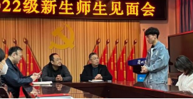 会上施烜老师代表体育部向新加入体育部大家庭的2022级新生表示欢迎和祝贺,希望同学们入校后能尽快调整目标,适应大学生活,紧锣密鼓的投入到学习和训练中,做好自我规划并结合所学专业的特点,做好今后人生发展规划。