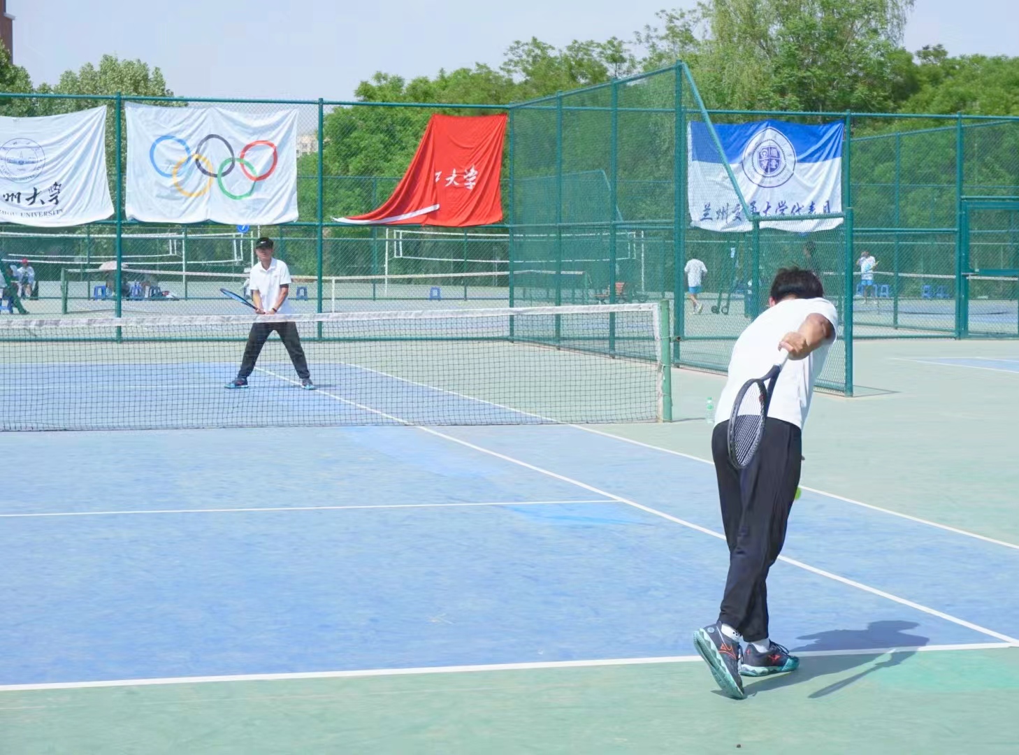据悉,甘肃省第五届大学生运动会网球比赛于5月20日在兰州理工大学开赛,网球项目首次被列入甘肃省大运会比赛项目。本次比赛竞赛项目包括团体赛和单项赛,共有15个参赛学校、180名参赛队员。其中,我校代表队由男、女队员各6名组成。