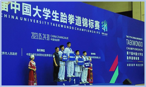 5月24日-30日,在湖南省张家界市举行的第17届全国大学生跆拳道锦标赛中我校代表队获得一项第三名、一项第五名的好成绩。