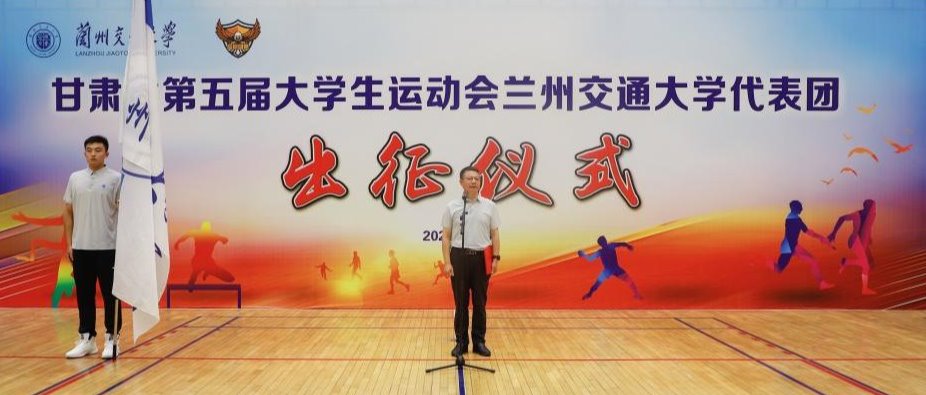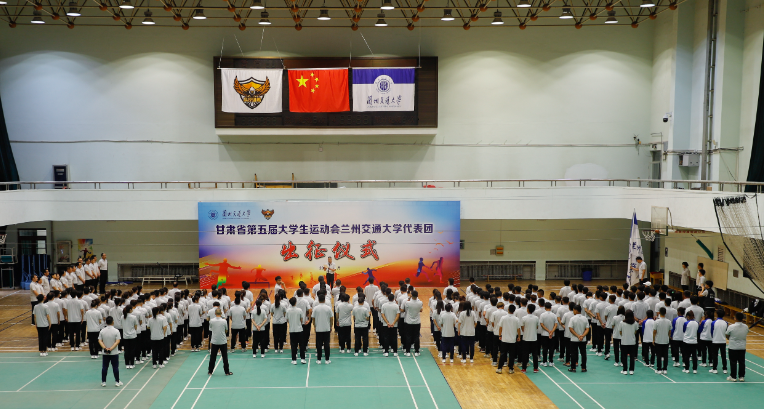 7月12日下午,甘肃省第五届大学生运动会兰州交通大学代表团出征仪在天佑体育馆举行。副校长、校体委主任陈兴冲出席,教务处、学生处、相关学院负责人、代表团工作人员、各项目教练员、运动员代表等 300余人参加出征仪式。仪式由体育部负责人主持。