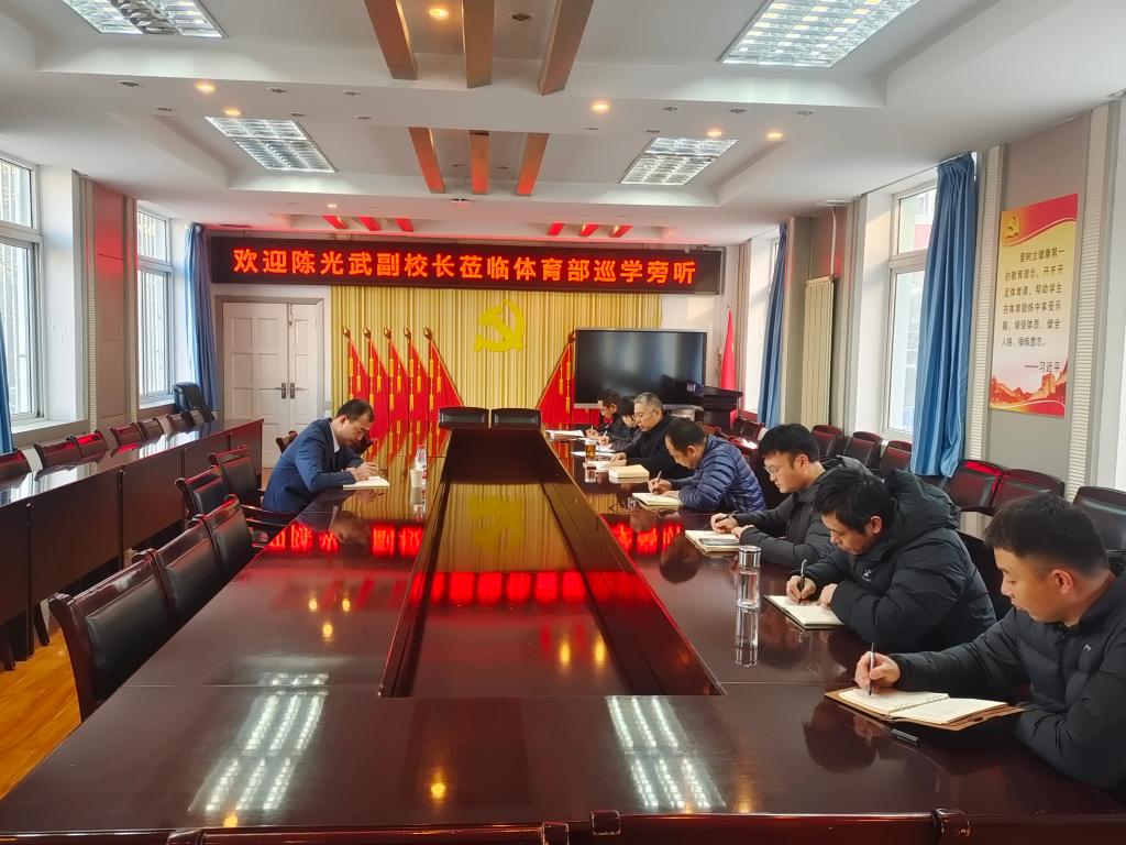 11月20日,体育部党总支理论学习中心组在体育部二楼会议室,以习近平总书记 “坚持党对全面依法治国的领导”为专题组织学习研讨。副校长陈光武到会巡学旁听指导,体育部党支部理论学习中心组成员参加会议。