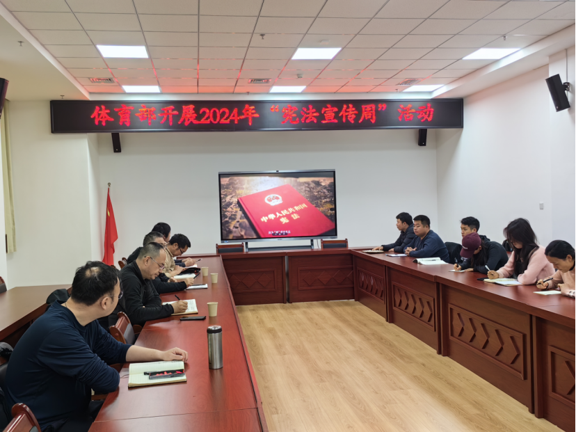 为进一步深入学习习近平法治思想,加强宪法法治教育。根据校党委安排部署,体育部12月4日开展2024年“宪法宣传周”主题活动。体育部领导班子及中心组成员、青年教师共计20人参加此次活动。