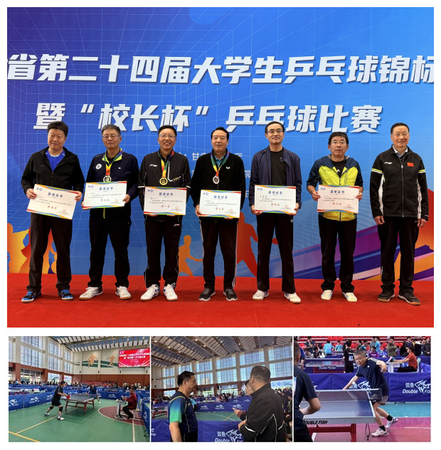5月9日至11日,甘肃省第二十四届大学生乒乓球锦标赛暨“校长杯”比赛在甘肃卫生职业学院圆满落幕。来自全省35所高校的469名运动员参加比赛。在校工会和校体委统筹组织下,我校教职工及学生代表队出征,最终斩获2金2银1铜及多项优异成绩。