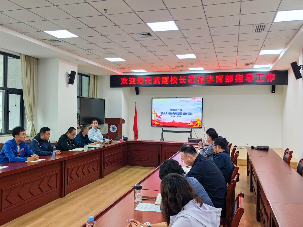 为推动深入贯彻落实中央八项规定精神走深走实,持续深化作风建设,5月26日,校党委常委、校体委主任、副校长陈光武以《中国共产党解决大党独有难题的创新尝试》为题,为全体教工党员讲授专题党课,并列席旁听理论学习中心组学习会、党总支委员会及党政联席会。