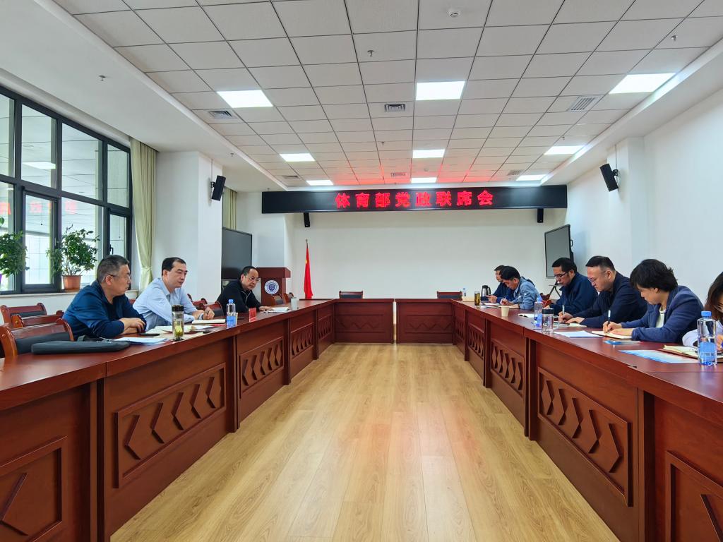在党政联席会上,体育部主任就人才引育工作现状及规划进行了汇报,强调了人才是推动体育事业发展的关键因素,要进一步加大人才引育力度,优化人才发展环境,为学校体育事业的可持续发展提供坚实的人才支撑。会议听取并讨论了运动人体科学实验室建设、运动训练专业建设及审核评估阶段性工作情况,总结了第56届运动会开展情况。