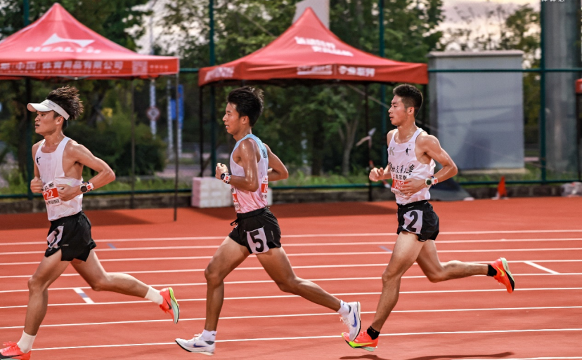 比赛中,我校田径队队员发扬“奋勇向前,顽强拼搏”的精神,最终取得男子甲组10000米第5名的好成绩。