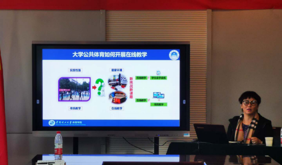 针对《大学公共体育在线教学》《大学公共体育线上金课建设》《大学公共体育课混合式教学》,三个内容以PPT的形式,通过图片、数据等进行了讲学,并分享了高校公共体育线上线下混合教学的优秀课程。为我部老师在新时期高校体育课程的改革和体育课线上线下混合式的教学形式方面提供了理论方法和实践指导。